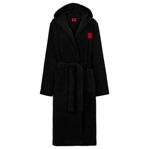 HUGO Women's Terry_Hooded Gown 10253946 01 Dressing, Black, XXL