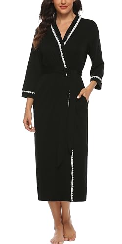 NY Threads Lightweight Women's Dressing Gown Soft Cotton Blend Kimono Robe Perfect for Loungewear and Sleepwear (Large, Black)