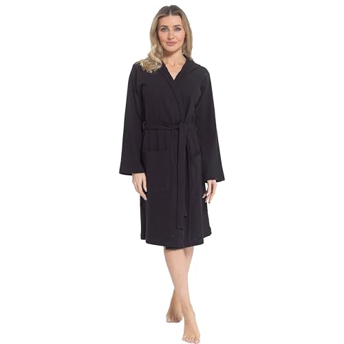 Daisy Dreamer Women's Hooded Waffle Cotton Bathrobe Dressing Gown Super Absorbent Spa Robes Ideal for Home & Loungewear, Black Small