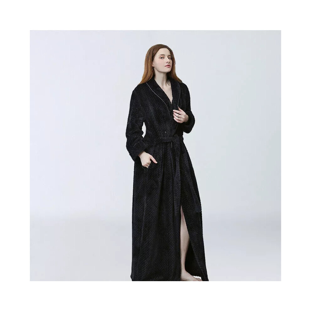 (Black, UK Mens size M = Tag Size L) Womens Bathrobe Long Fleece Dressing Gown Luxury Winter Housecoat Robe