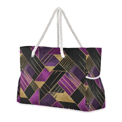 miaozhen Sturdy girls beach bag with zipper Carnival Abstract Purple Gold and Black womens computer tote bags for work for Travel Gym Vacation