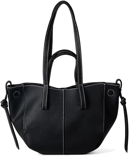 JOLILUNA Women's Black Leather Tote Bag, 13.78x8.46x3.15in, Magnetic Closure