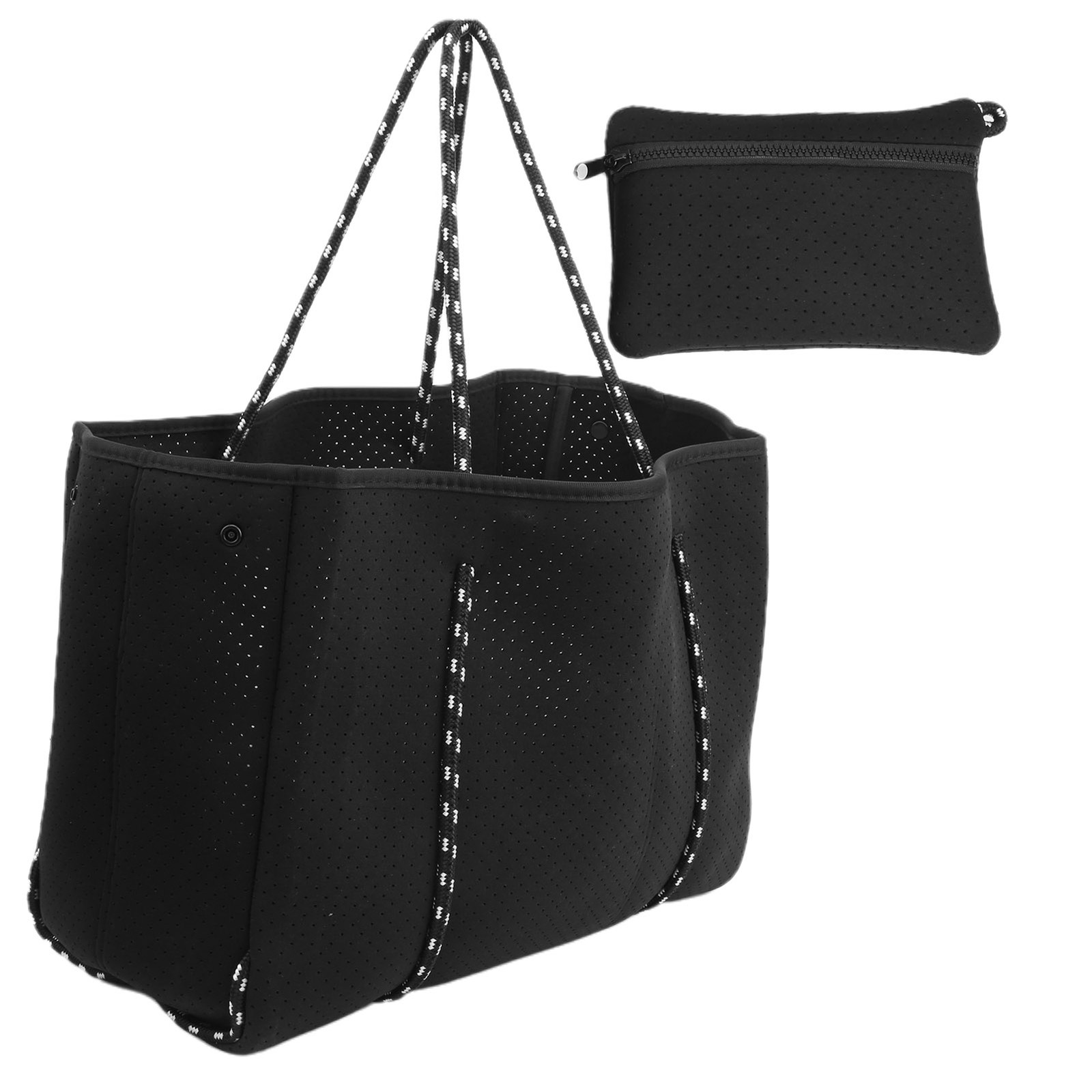 (black)Womens Tote Neoprene Beach Bag Perforated Design Durable And