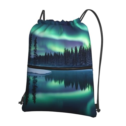 SMAZDFXX Women Men Northern Aurora Borealis Drawstring Backpack With Zippered Pocket