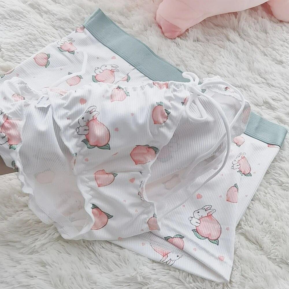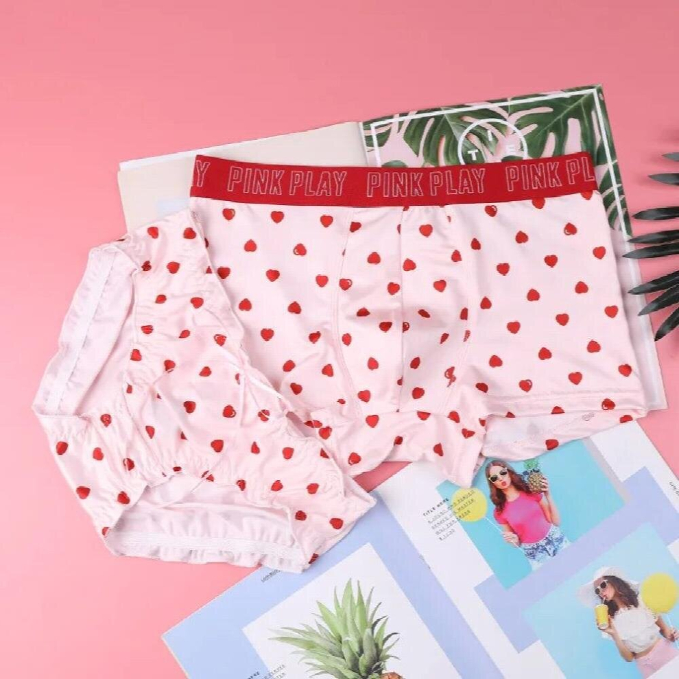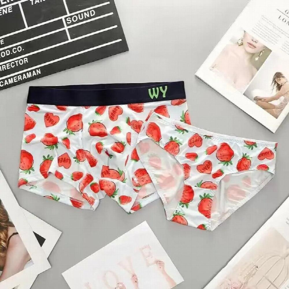Sexy Couple Sweet Panties Cozy Cotton Panties Women Briefs Men Boxer Shorts Pouch Underpants Panties Set 2pcs