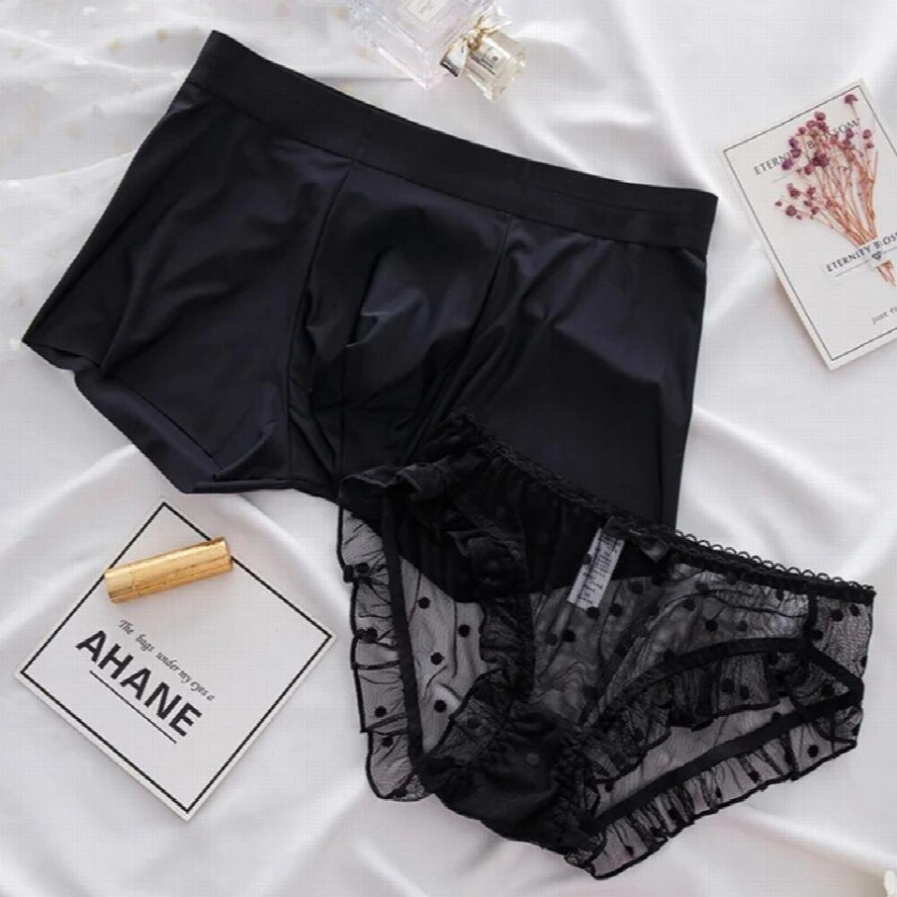 Sexy Couples Underwear Men Ice Silk Boxer Shorts Sexy Women Lace Underpants Underwear Panties Cozy Lingerie