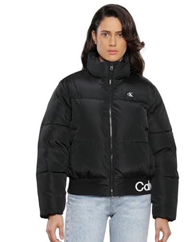 Calvin Klein Jeans Women Winter Jacket Logo Short Puffer, Black (Ck Black), XL