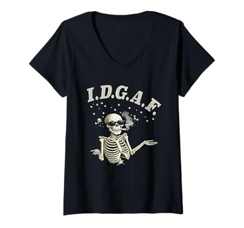Women's I.D.G.A.F., Funny Skeleton. V-Neck T-Shirt