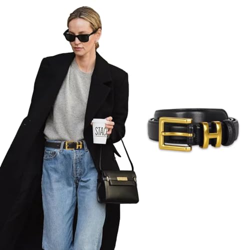 Aurolran Women's Fashion Classic Metal Buckle Leather Belt with Jeans Dress, Aah-black-classic, 36-39 (Pant 18-20)