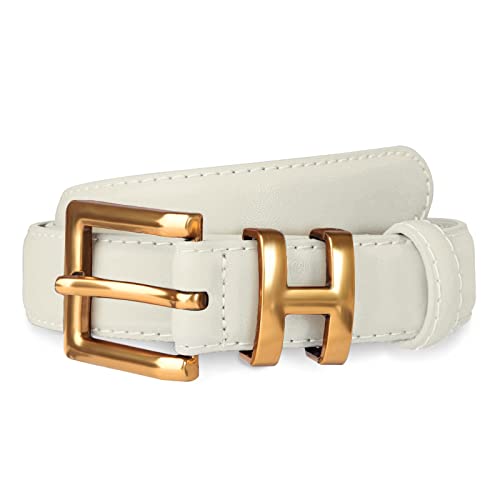 Aurolran Women's Fashion Classic Metal Buckle Leather Belt with Jeans Dress, Adr-white-gold, 32-35 (Pant 12-16)