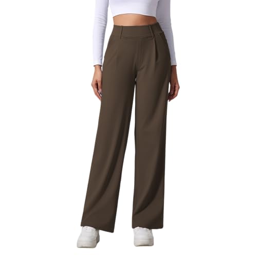SotRong Womens Straight Leg Pull On Work Pants High Waisted Stretch Dress Pant Business Professional Office Work Trousers Bootcut Leisure Casual Slacks with Pockets Brown L