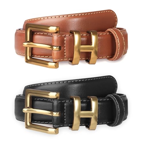 Aurolran Women's Fashion Classic Metal Buckle Leather Belt with Jeans Dress, Adf-black-classic-thin, 36-39 (Pant 18-20)