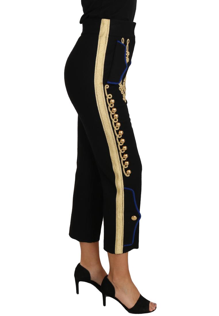 Dolce & Gabbana WoMens Military Embellished Pants Black Gold Dress Pant Wool - Size EU 38 (Womens)