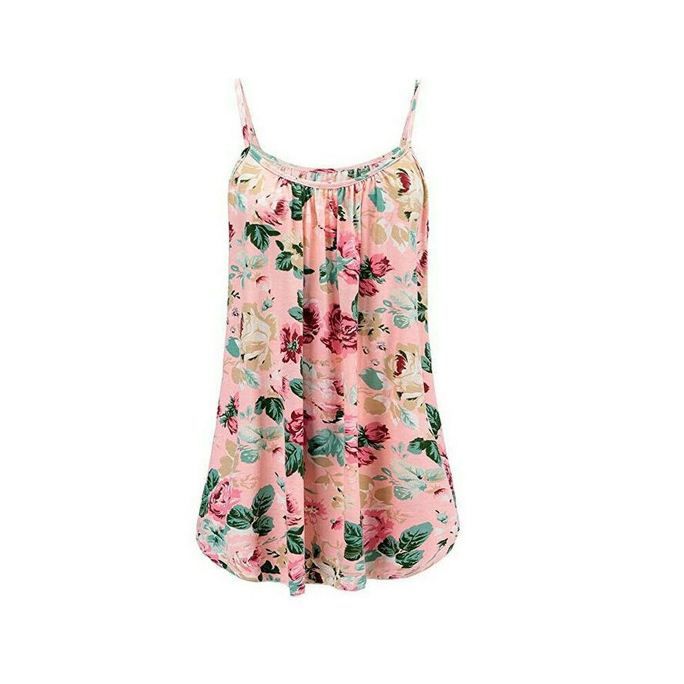 (Pinkgreenleaf, L) Summer Strappy Womens Tops Cami Dress Ladies Beach Sleeveless Floral Vest Dress