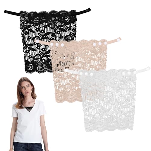 3PCS Modesty Panels for Low Cut Tops Mixed Color Lace Insert for Low Cut Dress Privacy Invisible Lace Modesty Panel Vest Women's Camisoles & Vests Clip-On Mock Camisole Bra Insert Overlay for Woman