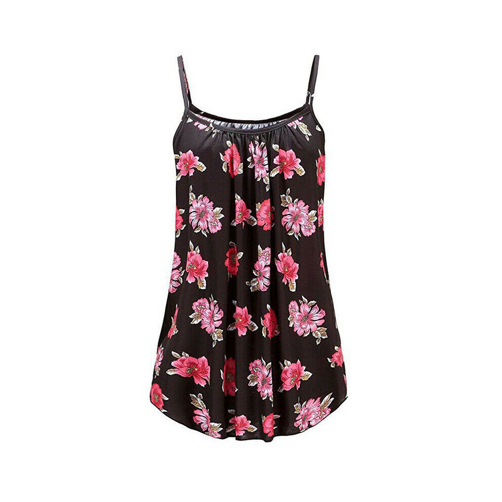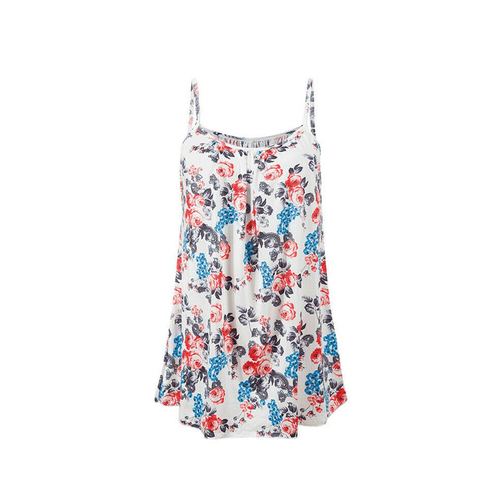 (Redfloral, M) Summer Strappy Womens Tops Cami Dress Ladies Beach Sleeveless Floral Vest Dress