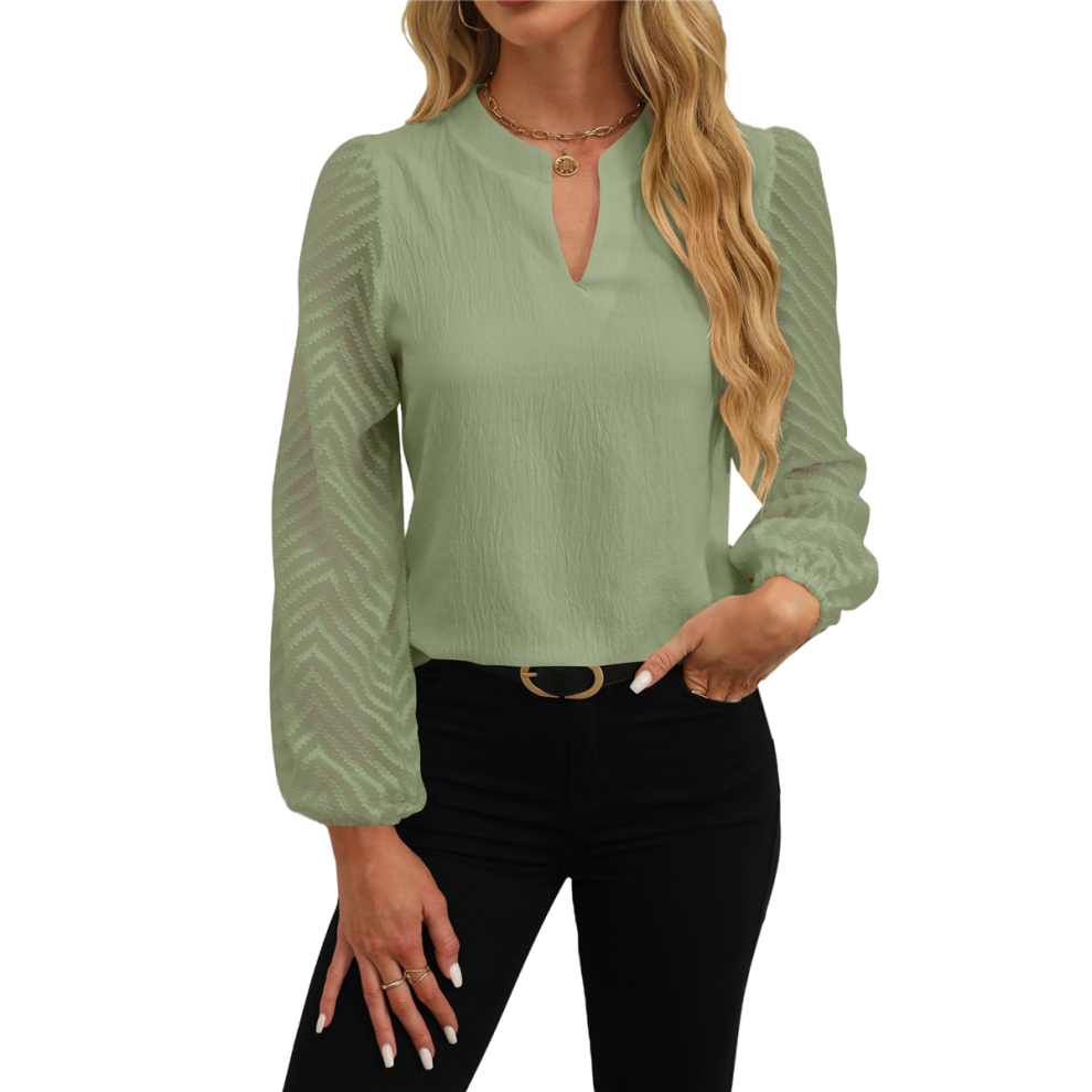 Womens Tops Dressy Casual Sheer Long Sleeve V Neck Shirts Loose Flowy Chiffon Business Work Blouses Green M