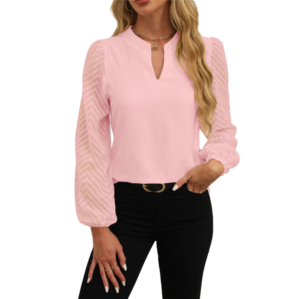 Womens Tops Dressy Casual Sheer Long Sleeve V Neck Shirts Loose Flowy Chiffon Business Work Blouses Pink L