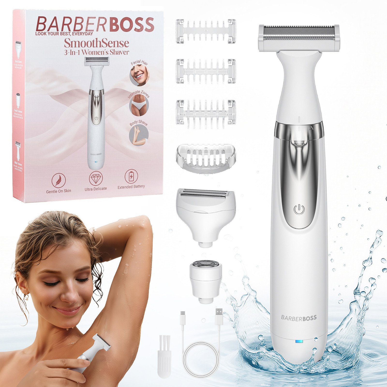 BarberBoss Women’s Electric Shaver, 3-in-1 Portable Ladies Groomer, QR-8003
