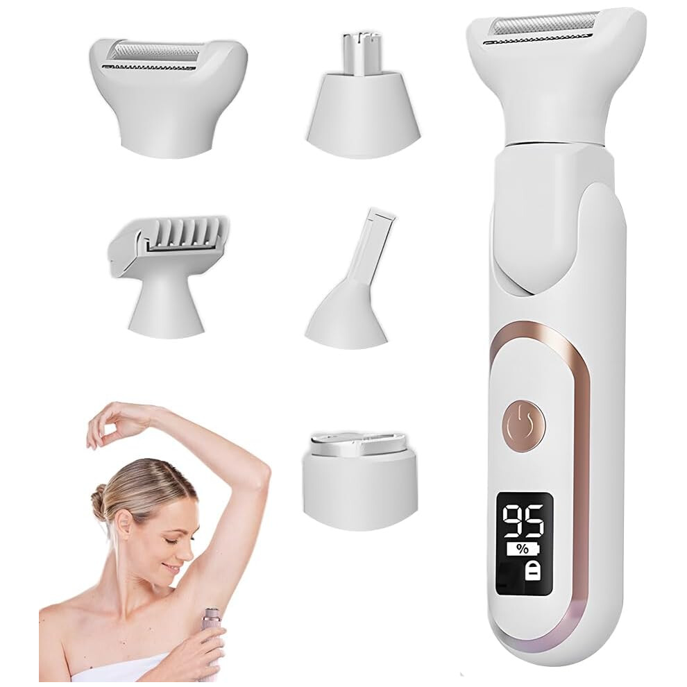 (white) Rechargeable Women's Electric Shaver - Painless Hair Removal, Digital Display, Multi-Functional Trimmer, Versatile Body Shaver