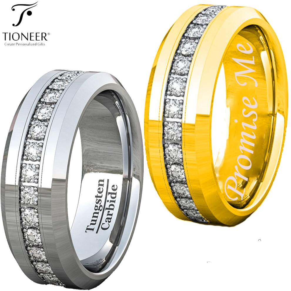 Tioneer Tungsten Carbide Wedding Band Ring Eternity Style Cubic Zirconia Mens Womens 8mm Promise Me Engraved