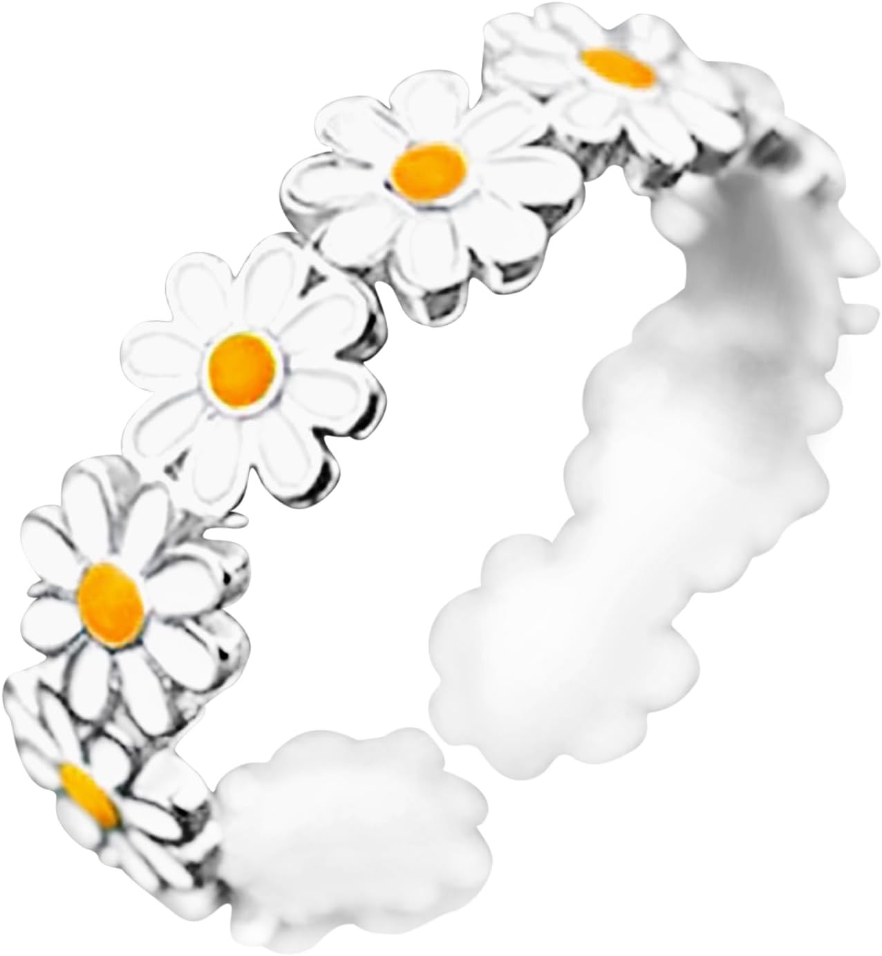 Sterling Silver Women's Daisy Eternity Ring - Solid Silver Adjustable Romantic