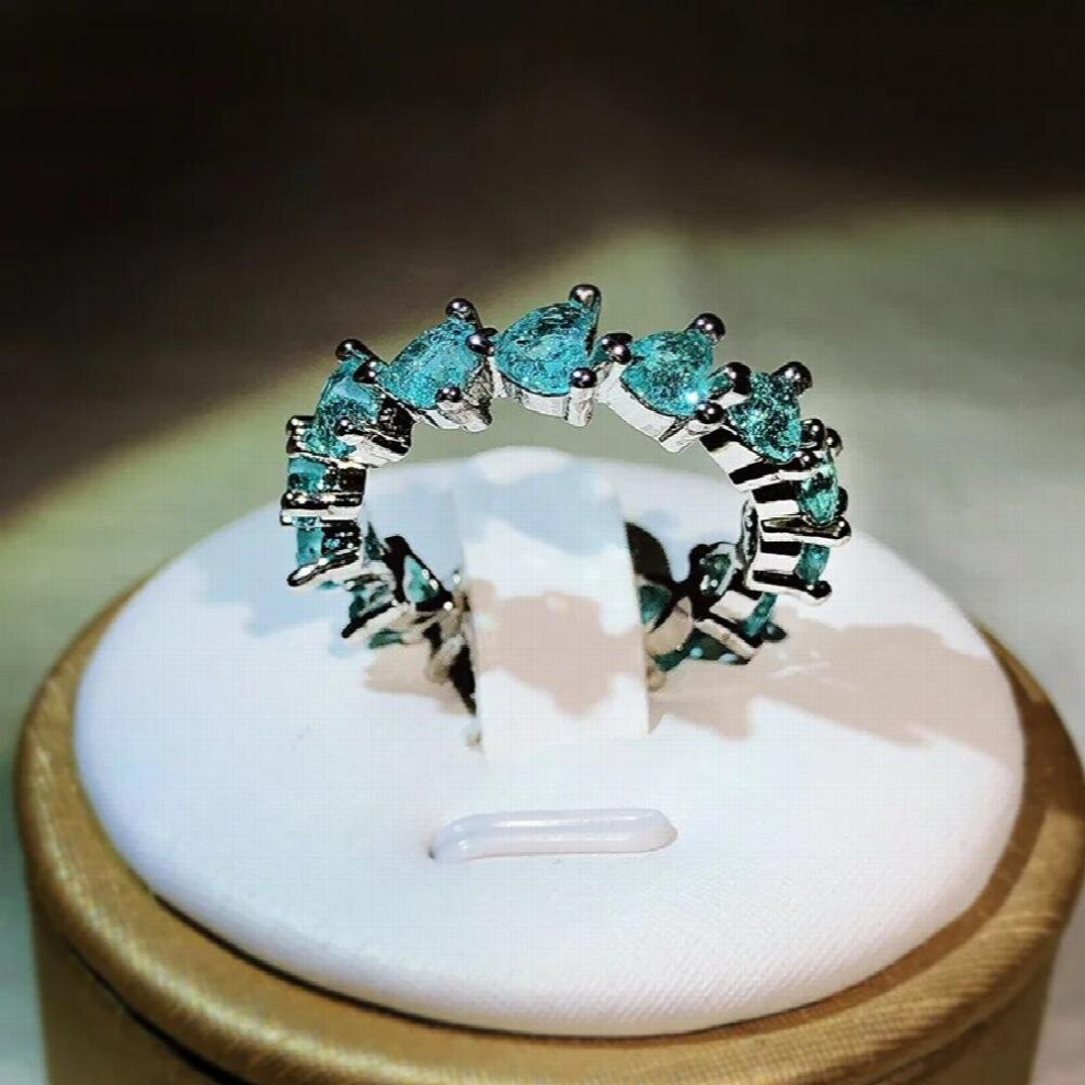 Womens Silver Palaiba Tourmaline Ring Crystal Heart Eternity Band Rings Wedding Promise Y2983