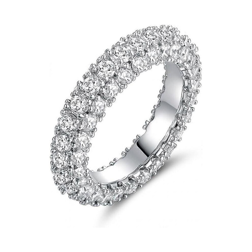 Womens 3 Row Eternity Ring White Gold or Rose Gold Plated Cubic Zirconia Eternity Band Ring Jewelry