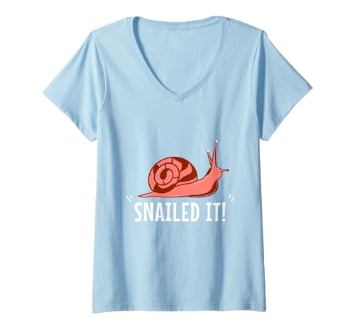 Womens Funny Snail Gift for Snails Friends & Family and Snailed it V-Neck T-Shirt