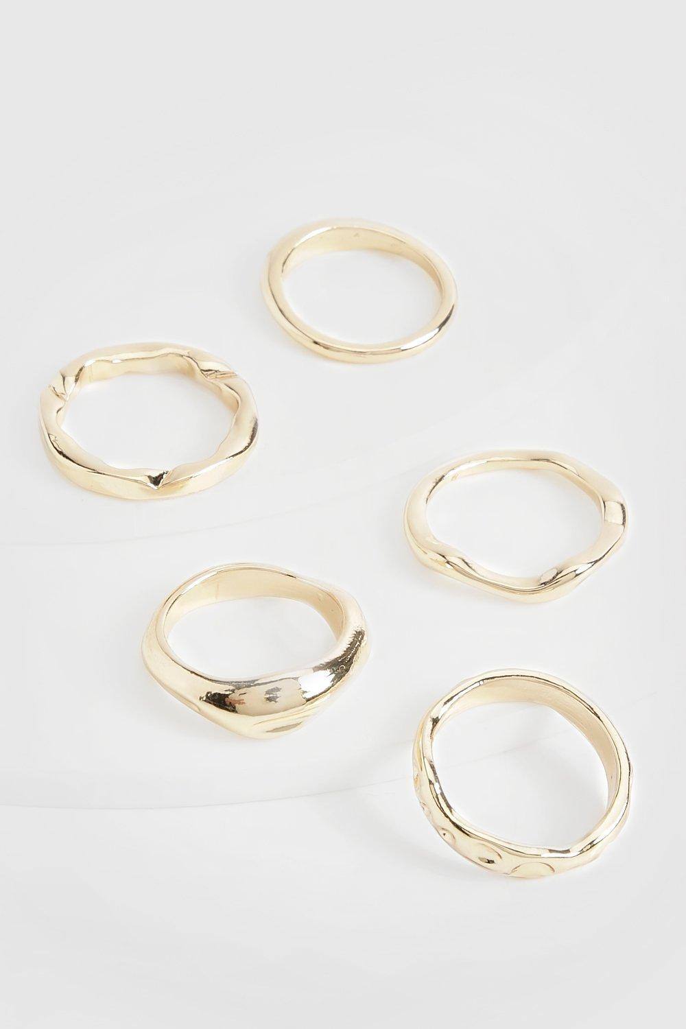 Womens Wave 5 Pack Rings - Gold - One Size, Gold