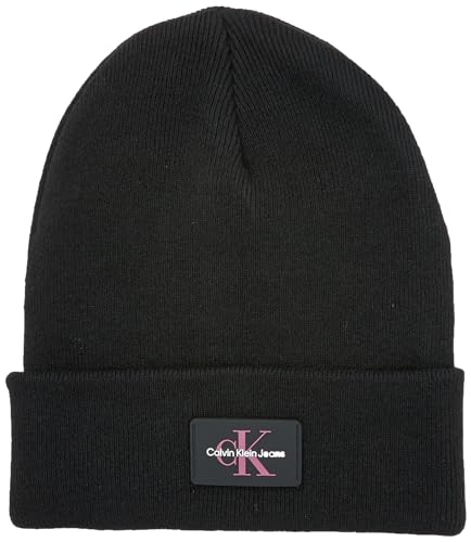 Calvin Klein Women's MONOLOGO Rubber Beanie Hats, Black, One Size