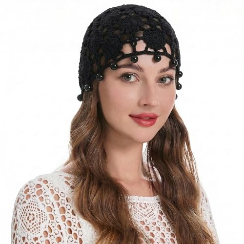 ZLYC Women's Girls Crochet Hat Handmade Beanie Hat Slouch Summer Knitted Hats, Pearl Black, One Size