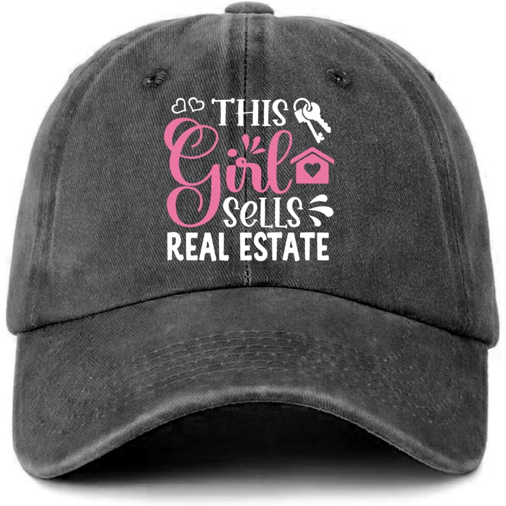 Funny Women's Distressed Washed Black Baseball Caps This Girl Sells Real Estate Printed Hats