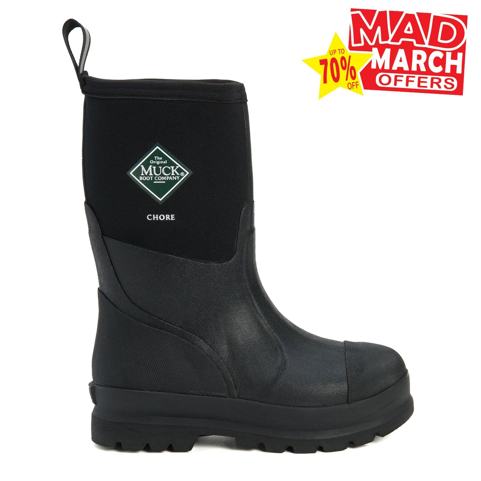 Muck Boots Chore Unisex Mens Womens Classic Mid Patterned Wellington Boots Black
