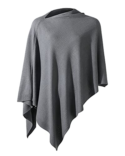 Women Ponchos Sweater Versatile Lightweight Solid Knitted Shawl Wrap Scarf Cape Accessories for Womens, Greystone, One Size