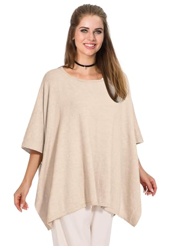 Iris Sprite Womens Pullover Poncho Sweater Elegant Shawl Wraps Soft Cashmere Feel Loose Fitting Ponchos Wrap (Beige)
