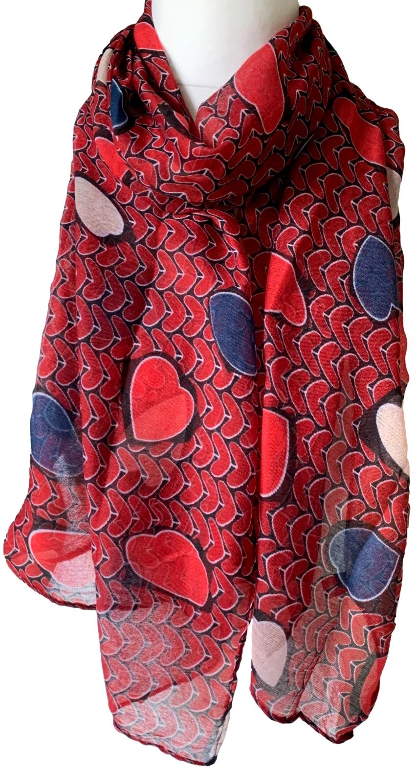 Red Heart Scarf Blue Love Hearts Ladies Womens Lightweight Scarves New