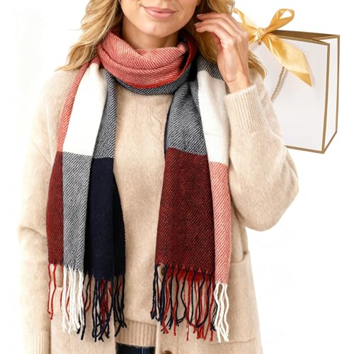 Scarf Gifts For Women,Women Fall Winter Scarf Classic Tassel Plaid Scarf Warm Soft Chunky Large Blanket Wrap Shawl Scarves (Red, One Size)