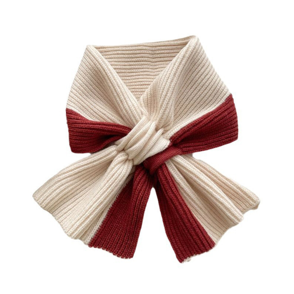 Women Knitted Cross Collar Scarf,Knitted Bowknot Scarves Fashion Short Women Scarf Knit Small Square Scarf (Red)