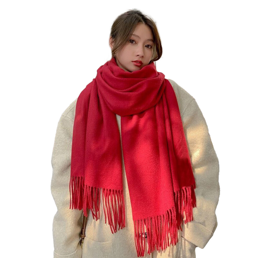 YOUSNH Women Solid Color Scarf Solid Color Thickened Warm Tassel Shawl Scarf Women's Scarves Red One Size