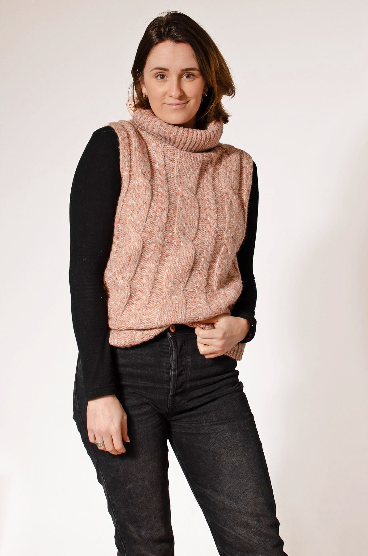 John Lewis Womens Blush Pink Sleeveless Cable Knit Roll Neck Jumper - Size Medium