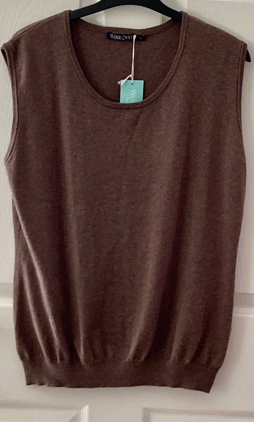 Woolovers Sleeveless Jumper Womens XL 40" Brown Silk Cotton Lightweight Vest New