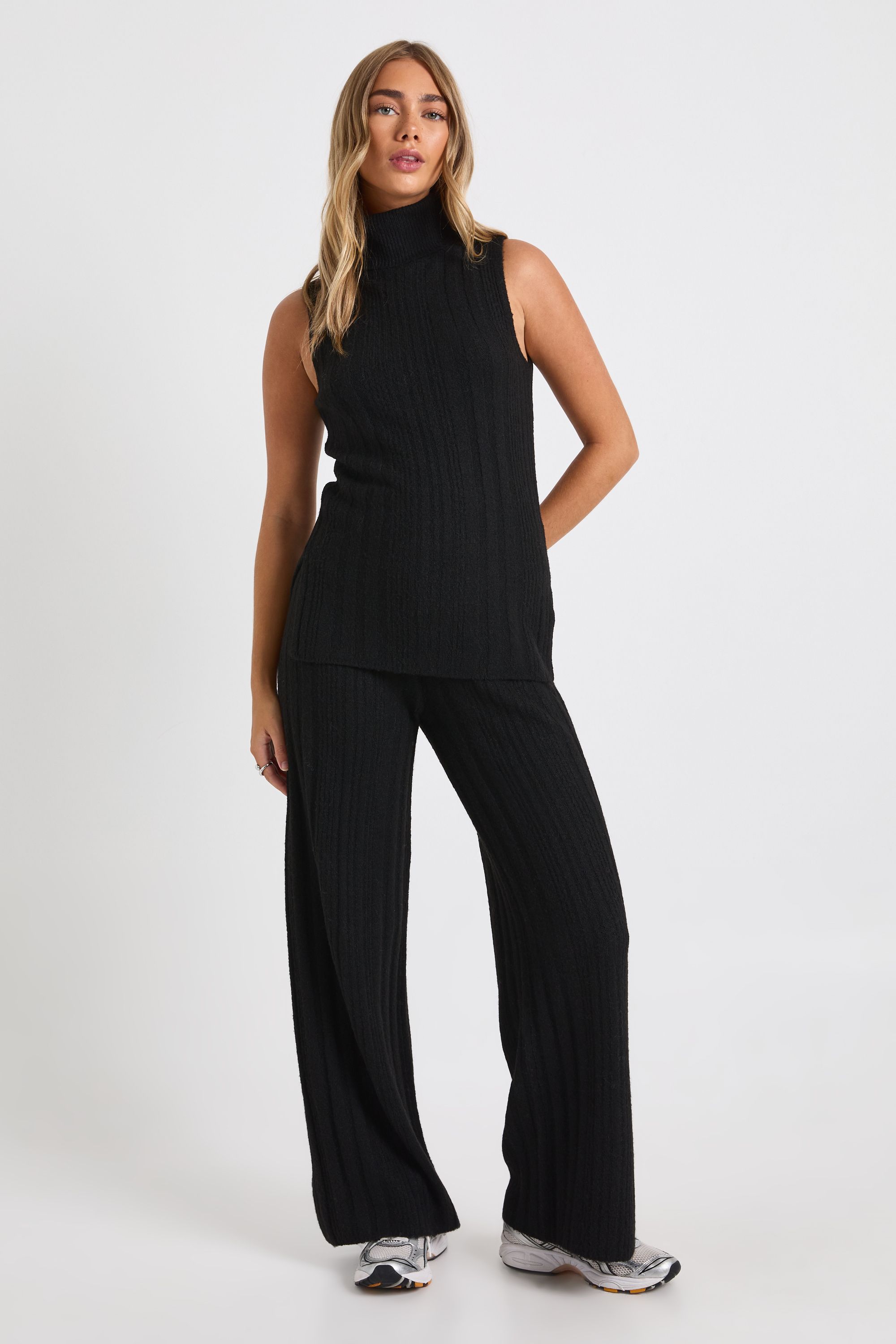 Boohoo Womens Soft Knit Longline Roll Neck Sleeveless Jumper and Wide Leg Trouser Co-Ord - Black - Size Large