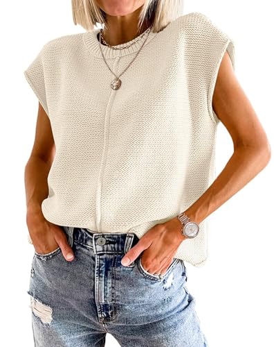 Jhsnjnr Womens Crew Neck Vest Plain Sleeveless Sweater Tank Tops Stylish Casual Summer Capped Sleeve Knit Jumper Apricot