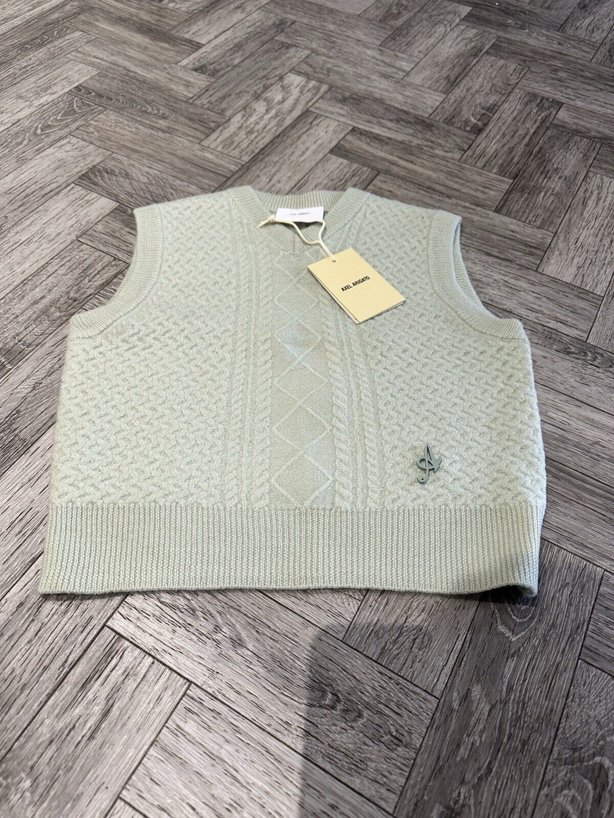 Axel Arigato Womens Jumper Sleeveless Vest Cable Knit Pale Green Reunited Small