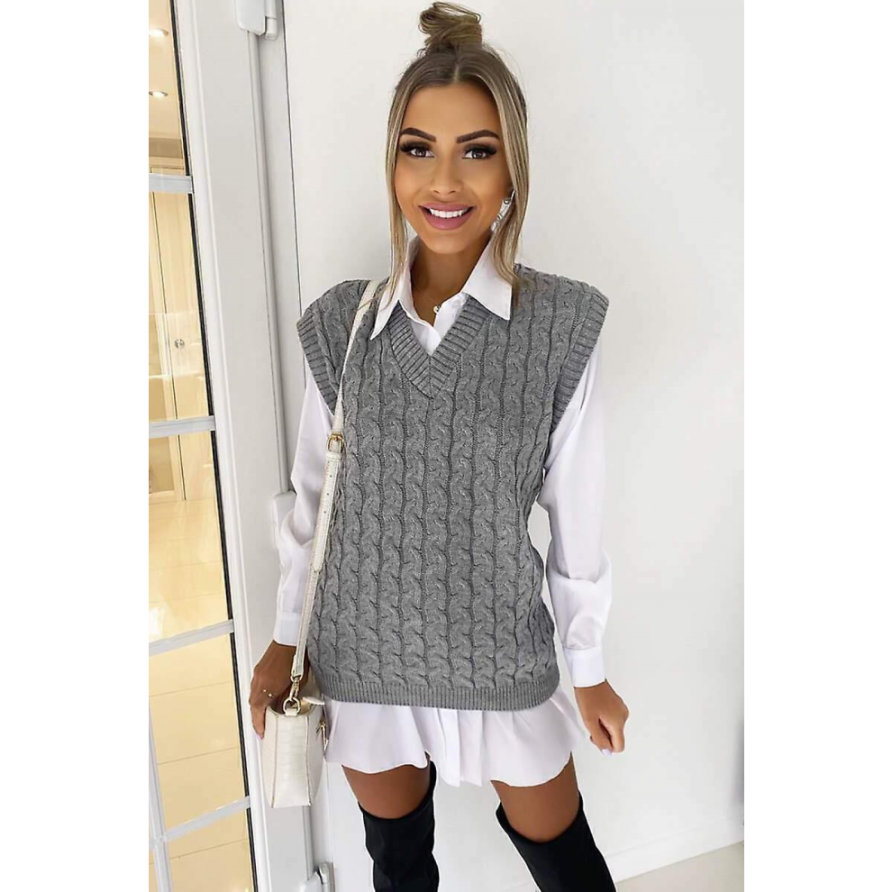 Womens Ladies Cable Knit Sleeveless Vest Knitted Jumper Tank Top Winter SweatersGrayS