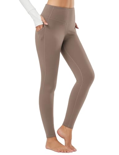 baleaf Women's Thermal Leggings with Pockets Fleece Lined Yoga Pants Winter Warm High Waisted Trousers Cocoa Brown XS