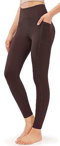 JOYSPELS Womens Fleece Lined Thermal Leggings with Pockets High Waisted Winter Warm Yoga Pants Gym Workout Fitness Running Thick Spandex Pants Brown L
