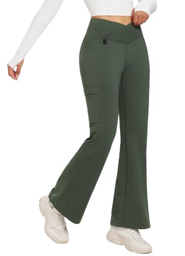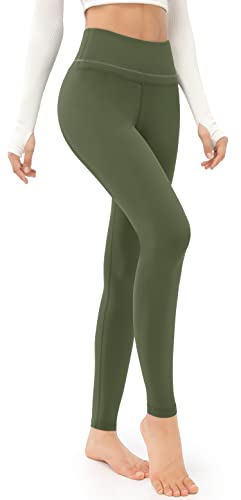 JOYSPELS Womens Thermal Fleece Lined Leggings, Warm High Waisted Gym Winter Leggings, Winter Yoga Pants for Women with Pockets UK - Army Green - L
