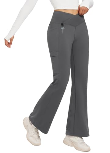 baleaf Fleece Lined Trousers Womens Thermal Flared Leggings Water Resistant Pants with Zip Pockets Winter Walking Hiking Dark Grey L